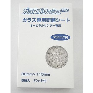 ガラスポリッシュPRO 5枚セット(クッションシート1枚付) オービタルサンダー専用 80x115mm ガラスポリッシュPROは、2ミクロンの酸化セリウムを使用しており、研磨の際に酸化セリウムが水に溶け出して白い液が出ます。 この白い液を洗い流さずに研磨していくとガラス、鏡表面がきめ細かくなり、油膜が取れてより透明感が出て美しく仕上がります。 |